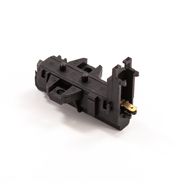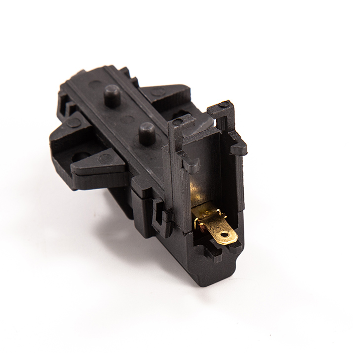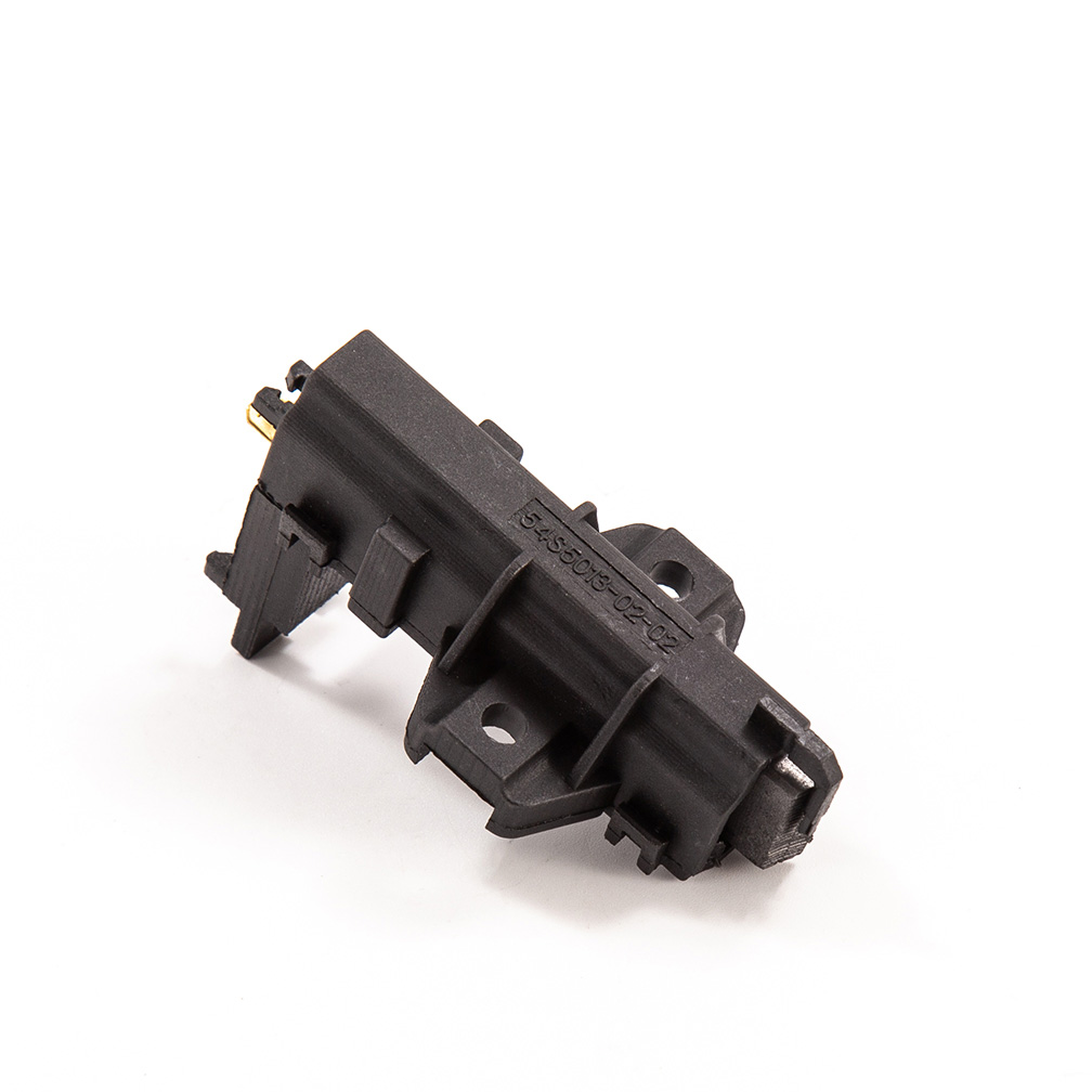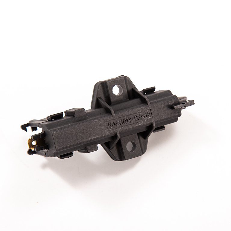 Carbon brush component is made by the material we named YD285-3-6, as well as spring, wire, terminal/tab, copper sleeve or iron sleeve and black plastic casing. Plastic casing resistant to high temperature, no more than 200 degrees. (usually around 150-180 degrees)Besides, carbon brush can be divided to double-layer/sandwich and single-layer.