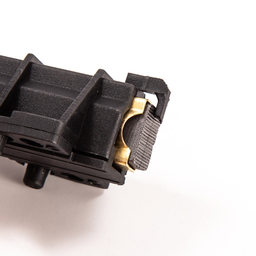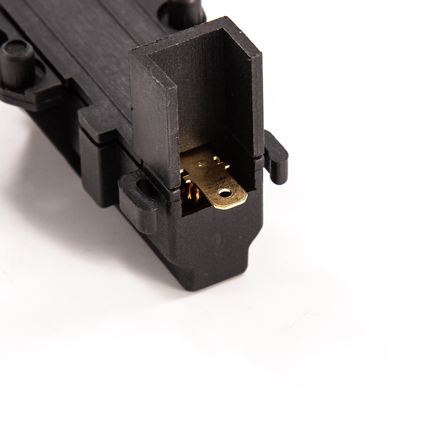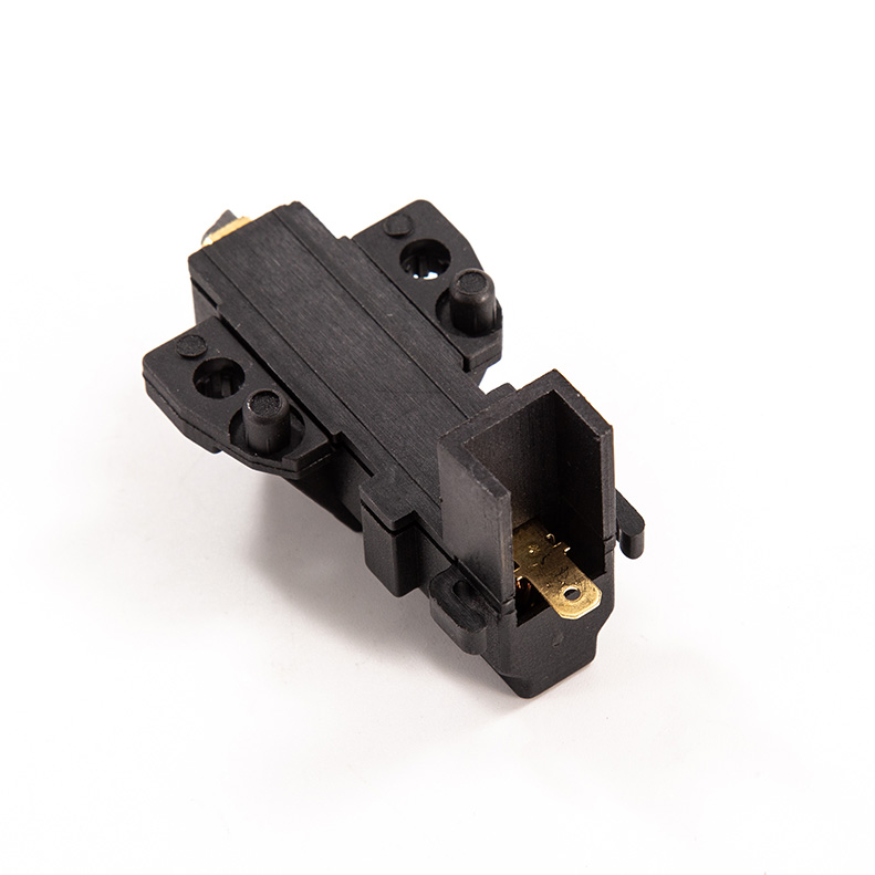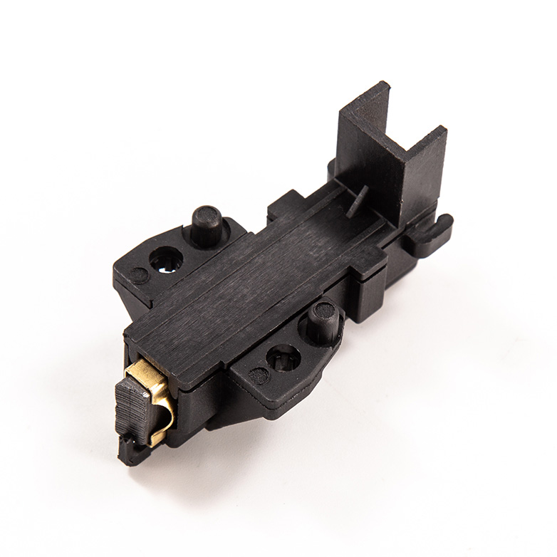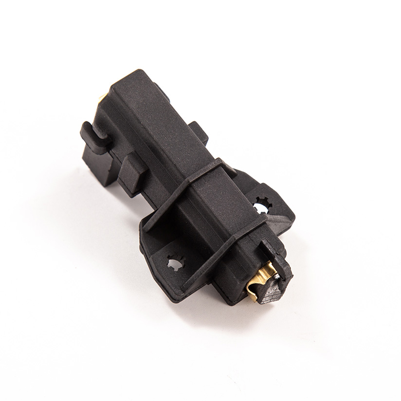 Carbon brush component is made by the material we named YD285-3-6, as well as spring, wire, terminal/tab, copper sleeve or iron sleeve and black plastic casing. Plastic casing resistant to high temperature, no more than 200 degrees. (usually around 150-180 degrees)Besides, carbon brush can be divided to double-layer/sandwich and single-layer.