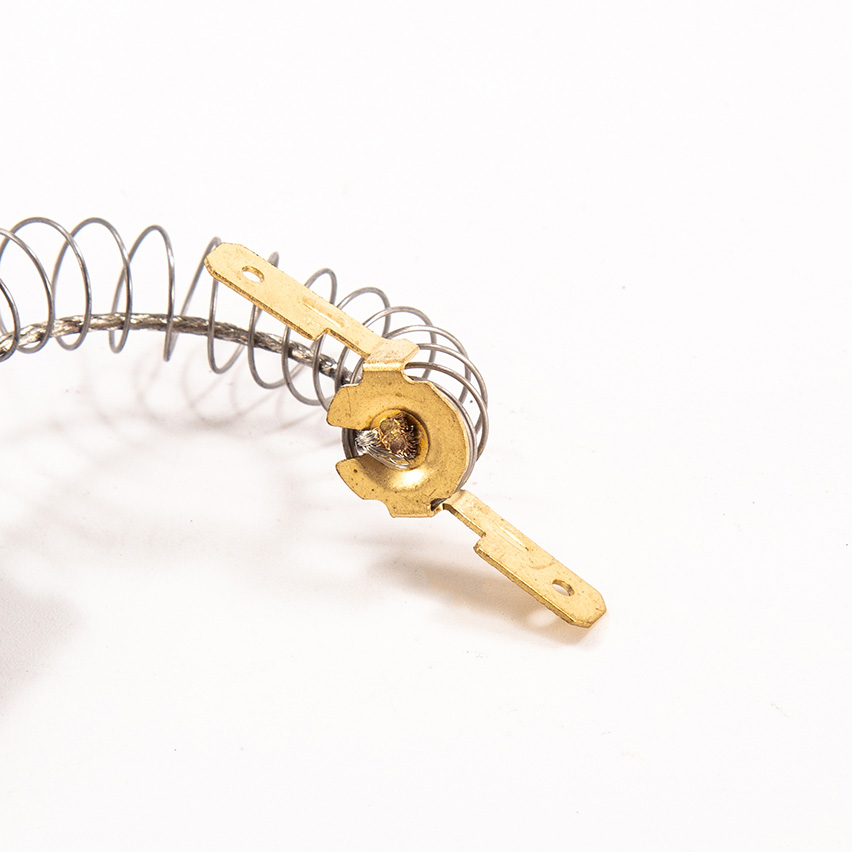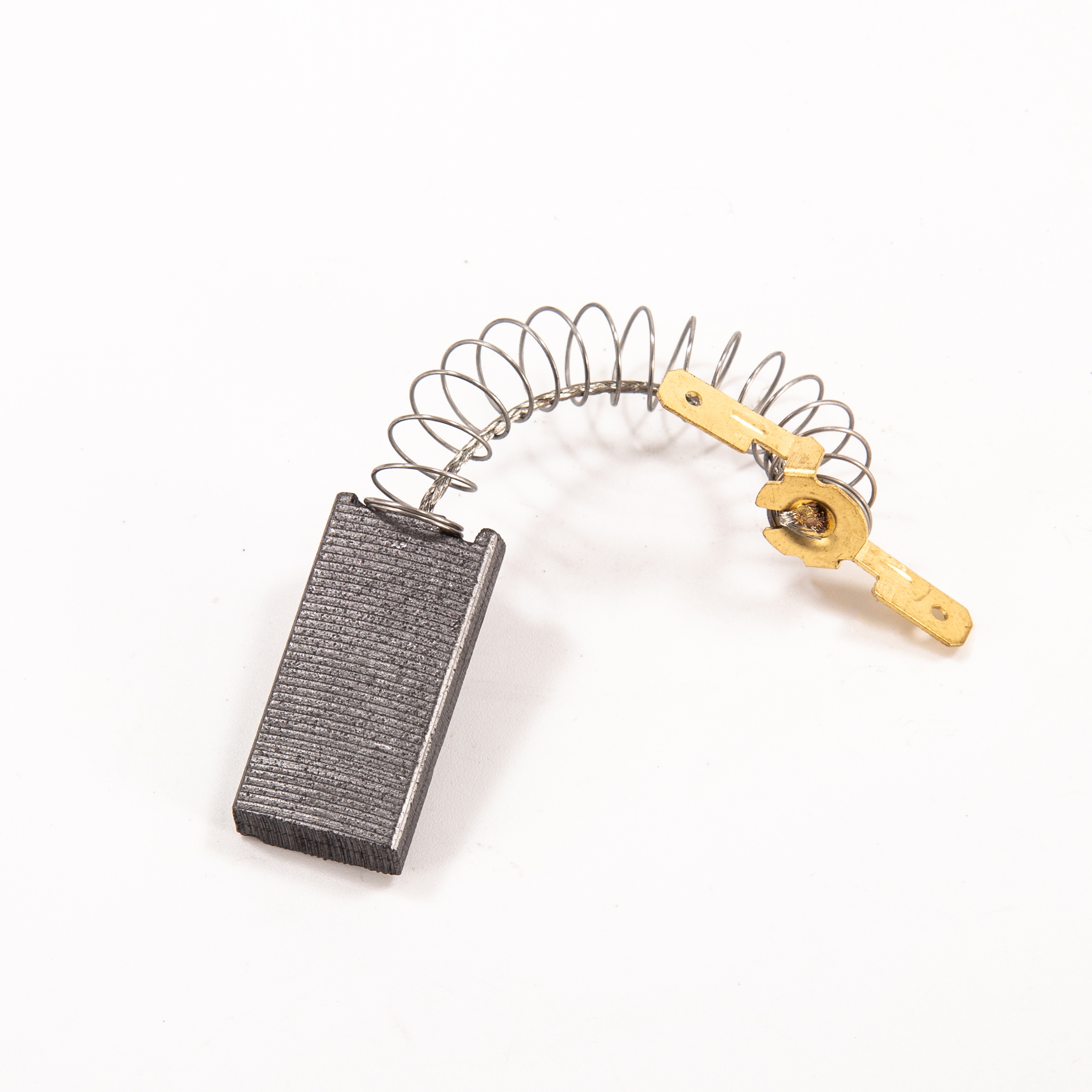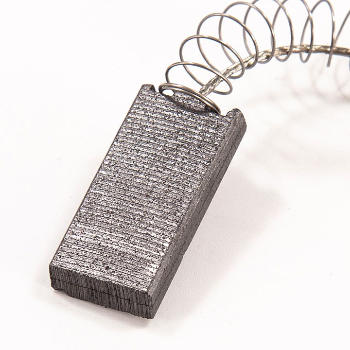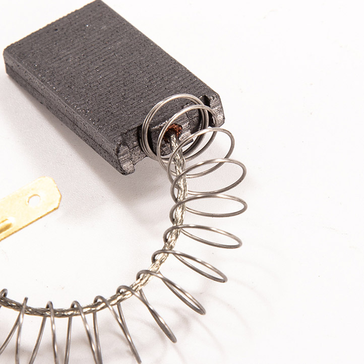 Carbon brush is made by the material we named YD285-3-6, as well as spring, wire and terminal/tab. Besides, carbon brush can be divided to double-layer/sandwich and single-layer.