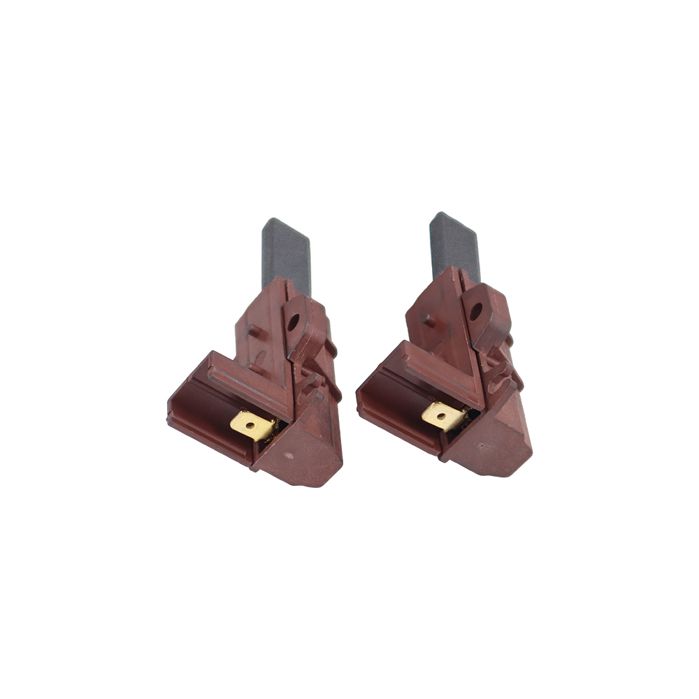 Carbon brush component is made by the material we named YD285-3-6, as well as spring, wire, terminal/tab, copper sleeve or iron sleeve and red plastic casing(PA66). Plastic casing resistant to high temperature, no more than 200 degrees. (usually around 150-180 degrees)Besides, carbon brush can be divided to double-layer/sandwich and single-layer.