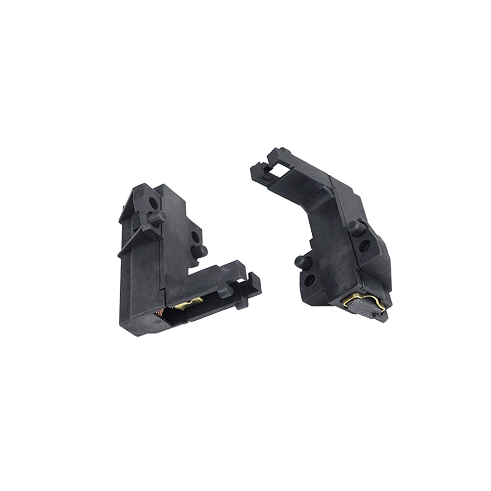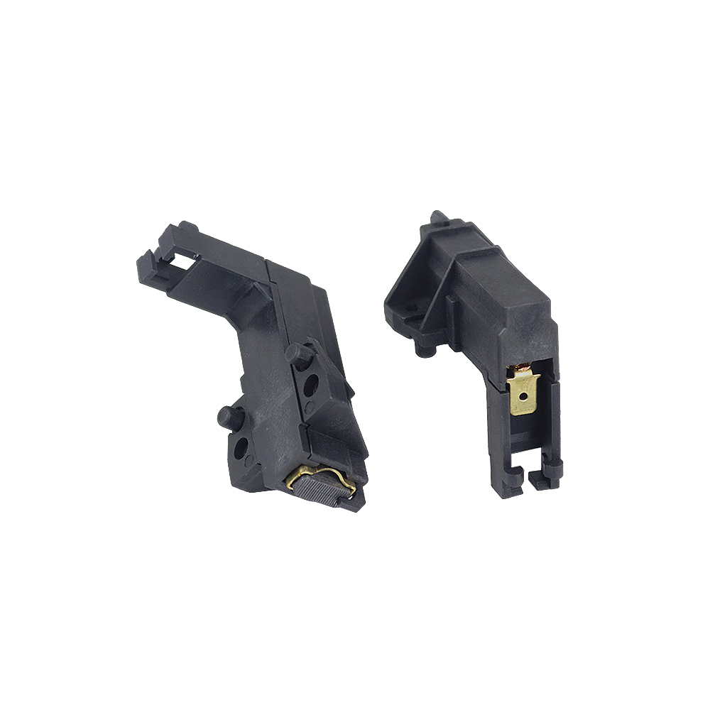Carbon brush component is made by the material we named YD285-3-6, as well as spring, wire, terminal/tab, copper sleeve or iron sleeve and black plastic casing. Plastic casing resistant to high temperature, no more than 200 degrees. (usually around 150-180 degrees)Besides, carbon brush can be divided to double-layer/sandwich and single-layer.