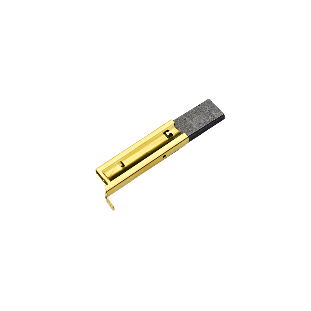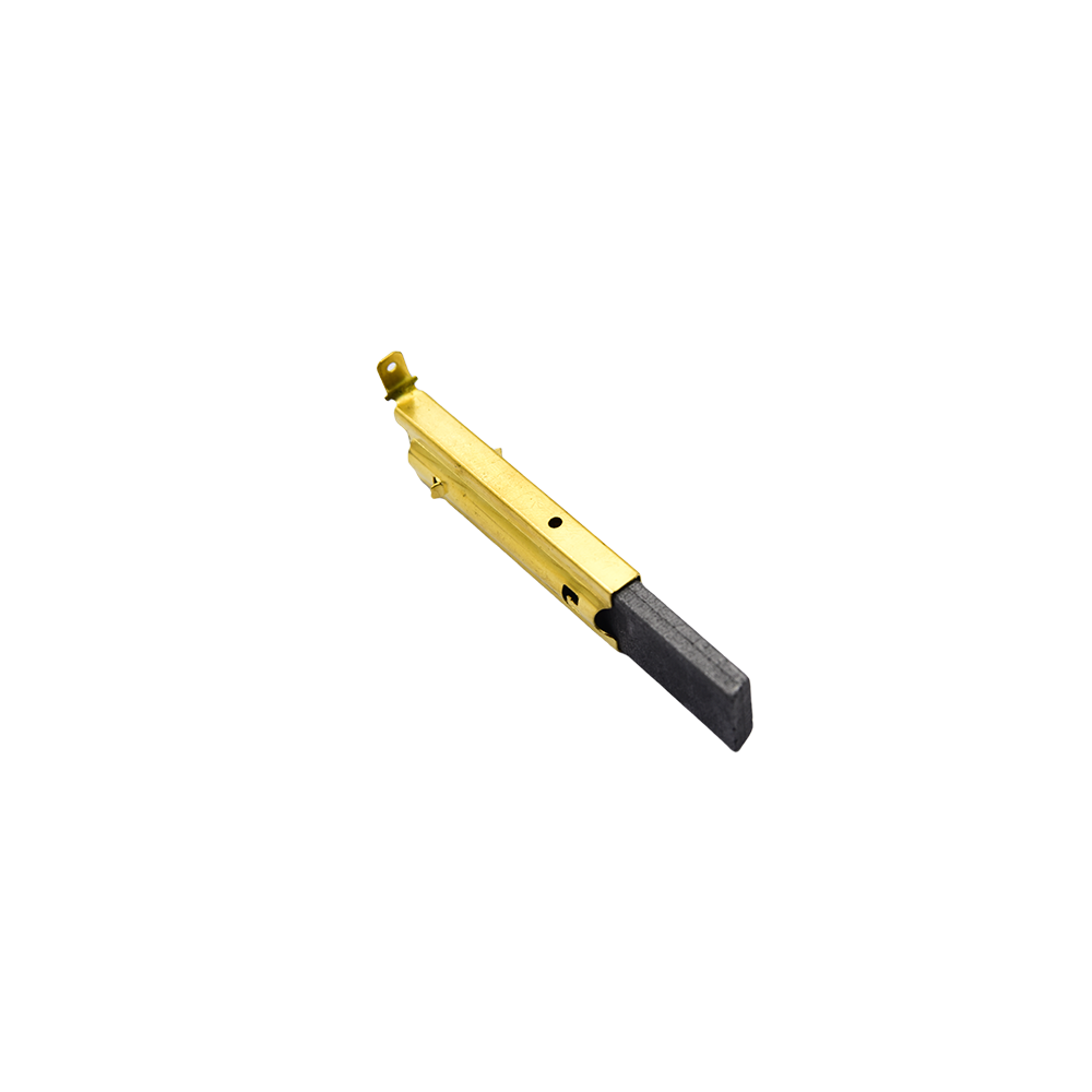 Carbon brush component is made by the material we named YD285-3-6, as well as spring, wire, terminal/tab, copper sleeve or iron sleeve, and carbon brush can be divided to double-layer/sandwich and single-layer. The main picture is copper sleeve.