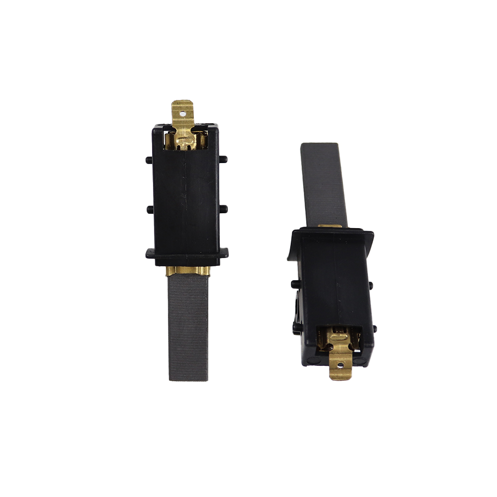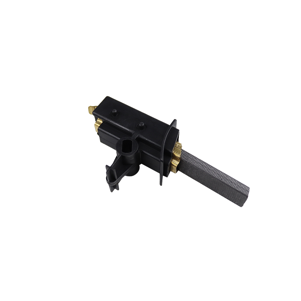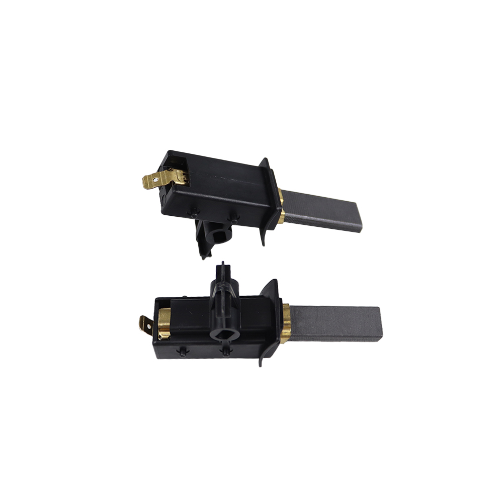 Carbon brush component is made by the material we named YD285-3-6, as well as spring, wire, terminal/tab, copper sleeve or iron sleeve and black plastic casing. Plastic casing resistant to high temperature, no more than 200 degrees. (usually around 150-180 degrees)Besides, carbon brush can be divided to double-layer/sandwich and single-layer.