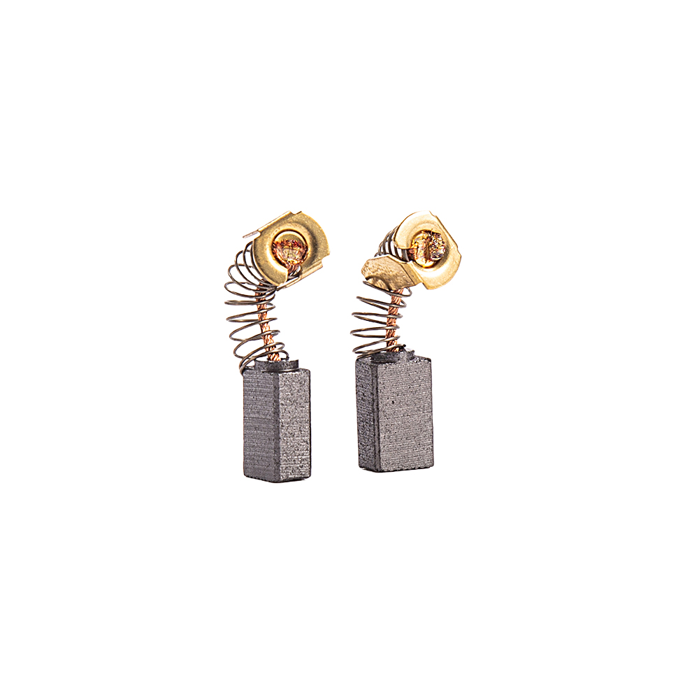 CB-51A is for drills or angle grinders, and the size is 5*8*13mm. The most common materials are three types: electrographite, asphalt graphite, and resin graphite. This carbon brush has tab, wire and spring. Usually for maintenance, tab is copper plated iron, and spring is normal. But, it also can be used by copper tab and stainless steel spring. It all depends on customers' requirements.